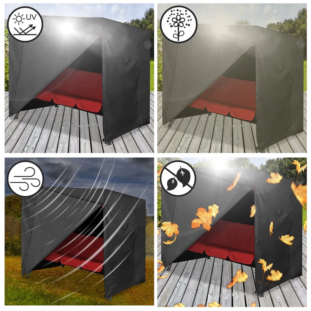 Die hochwertige Abdeckung von Kingsleeve® ist besonders reißfest, robust und UV-lichtbeständig. Sie bietet langfristigen Schutz Ihrer Lieblingsmöbel. Die Abdeckungen können im Keller, Dachboden, Carport oder auf einer überdachten Terrasse verwendet werden und bieten zuverlässigen Schutz vor Dreck, Staub, Moos, Pollen, Tierschmutz, Wind, UV-Strahlung und Laub.