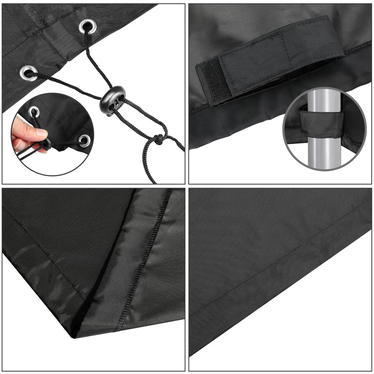 Die durchlaufende Kordel wird mittels Befestigungsclip fixiert und lässt sich festziehen. Die zusätzlichen 4 Klettverschlüsse mit Doppelnaht sind zum Fixieren am Möbelstück. Die Abdeckung bleibt damit fest an Ort und Stelle – selbst bei starkem Wind. Mit dem praktischen Zipper hat man die Front der Abdeckung schnell geöffnet; so kommt man direkt an das Möbelstück.