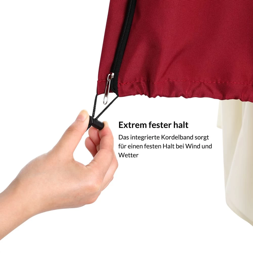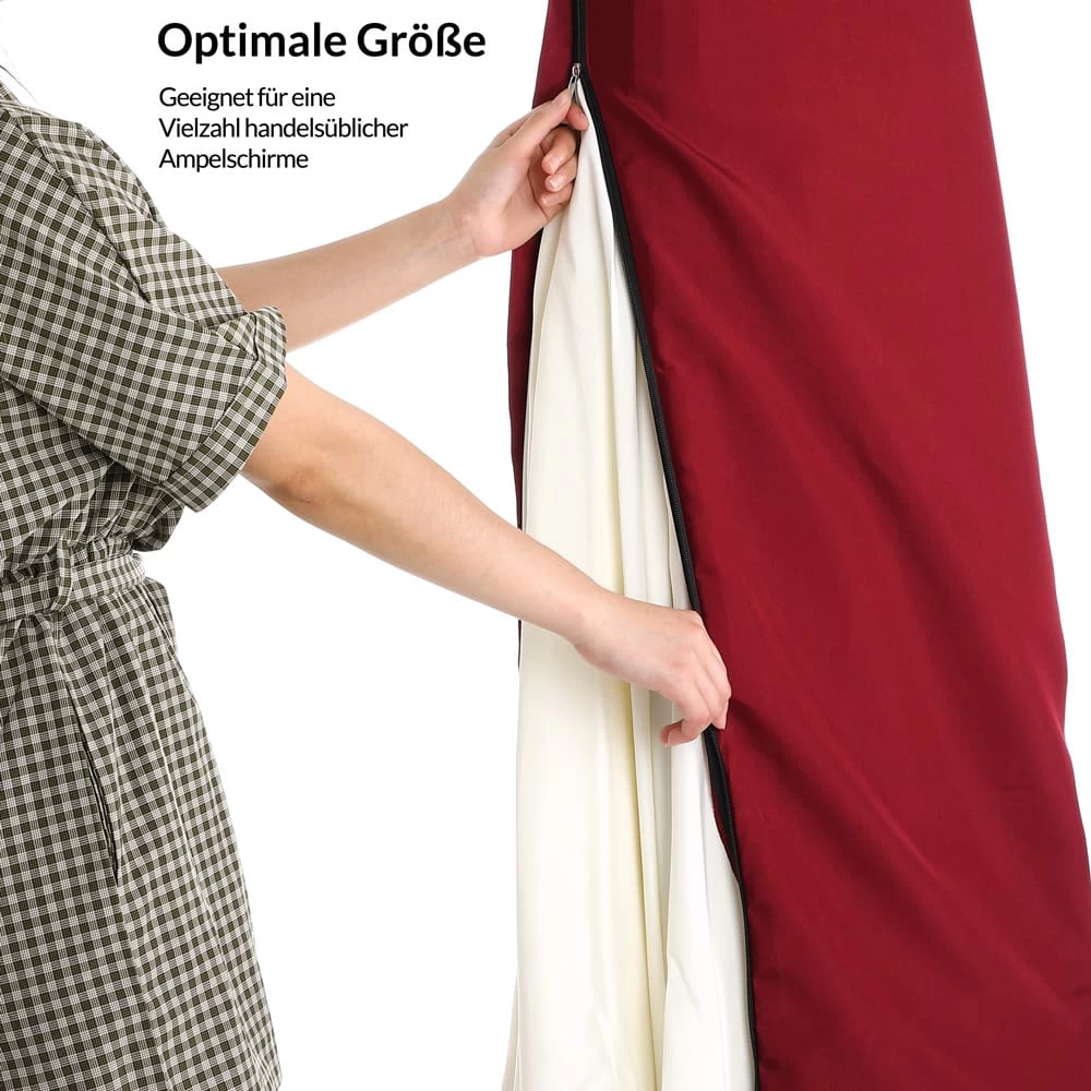 Die Schutzhülle mit Reißverschluss aus 160 g/m² Polyester bewahrt Ihren Sonnenschirm vor Feuchtigkeit, Schmutz, Frost und Staub.