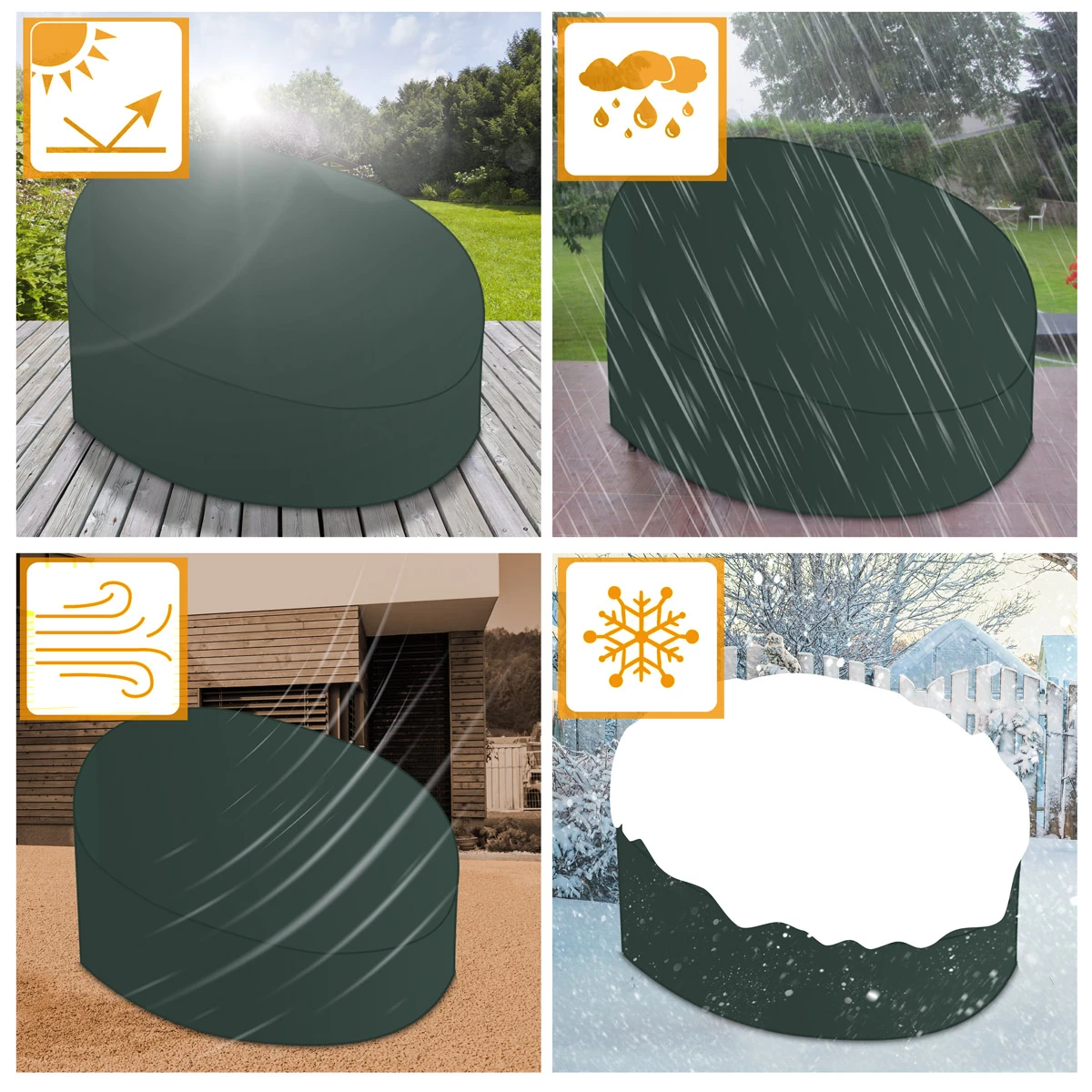 Das Ganzjahresprodukt ist UV-beständig, stabil, reißfest und einfach anzubringen. Bei Verschmutzung kann die Abdeckung einfach mit einem Tuch abgewischt werden.