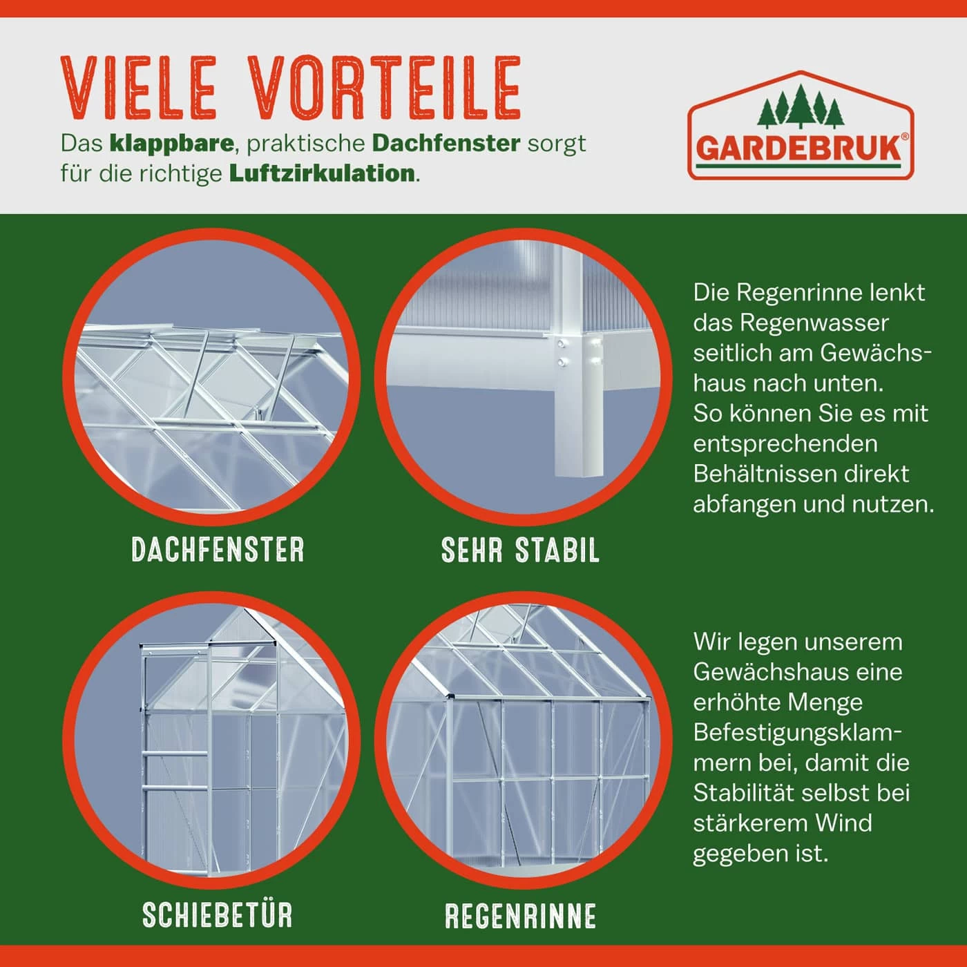 - hohe Stabilität für Ihr Gewächshaus