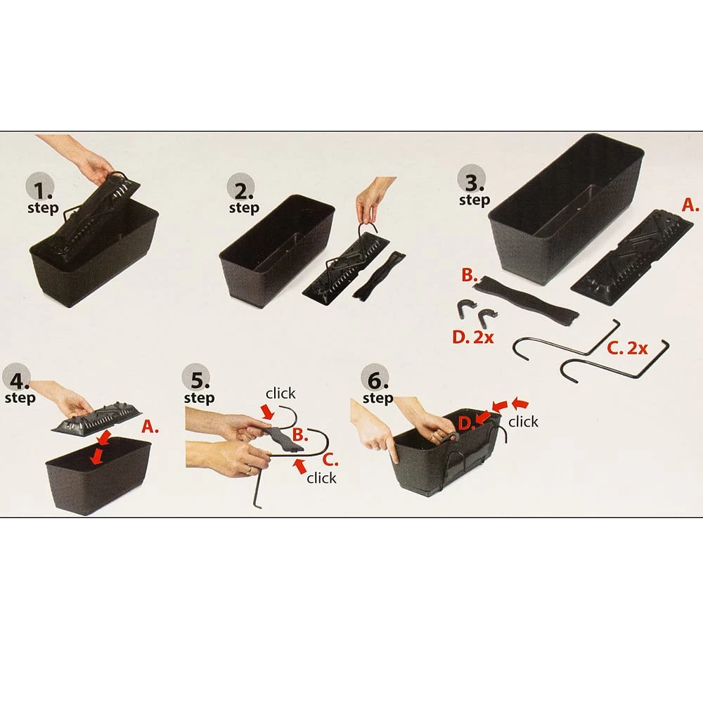 – 1x Blumenkasten mit Haken + Halterungen + Selbstbewässerungsschale