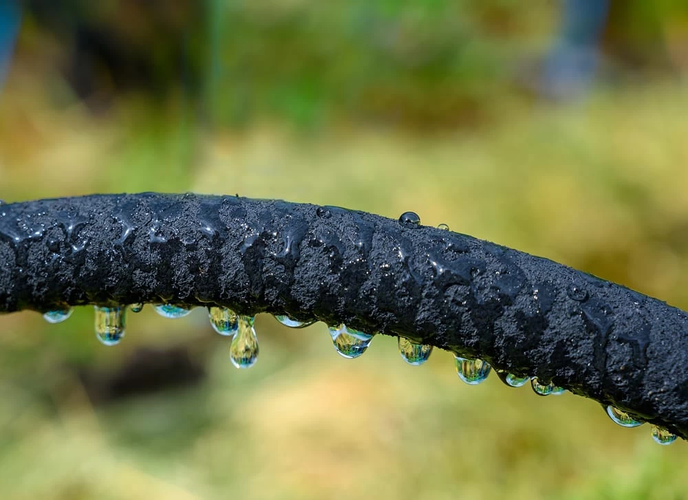 – das Wasser tropft ganz langsam durch die Poren des Schlauches in den Boden