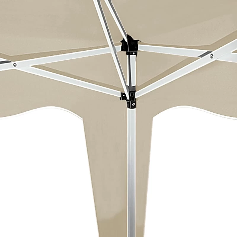 Metallverstrebungen und verankerbare Füße geben diesem Pavillon einen guten Stand.