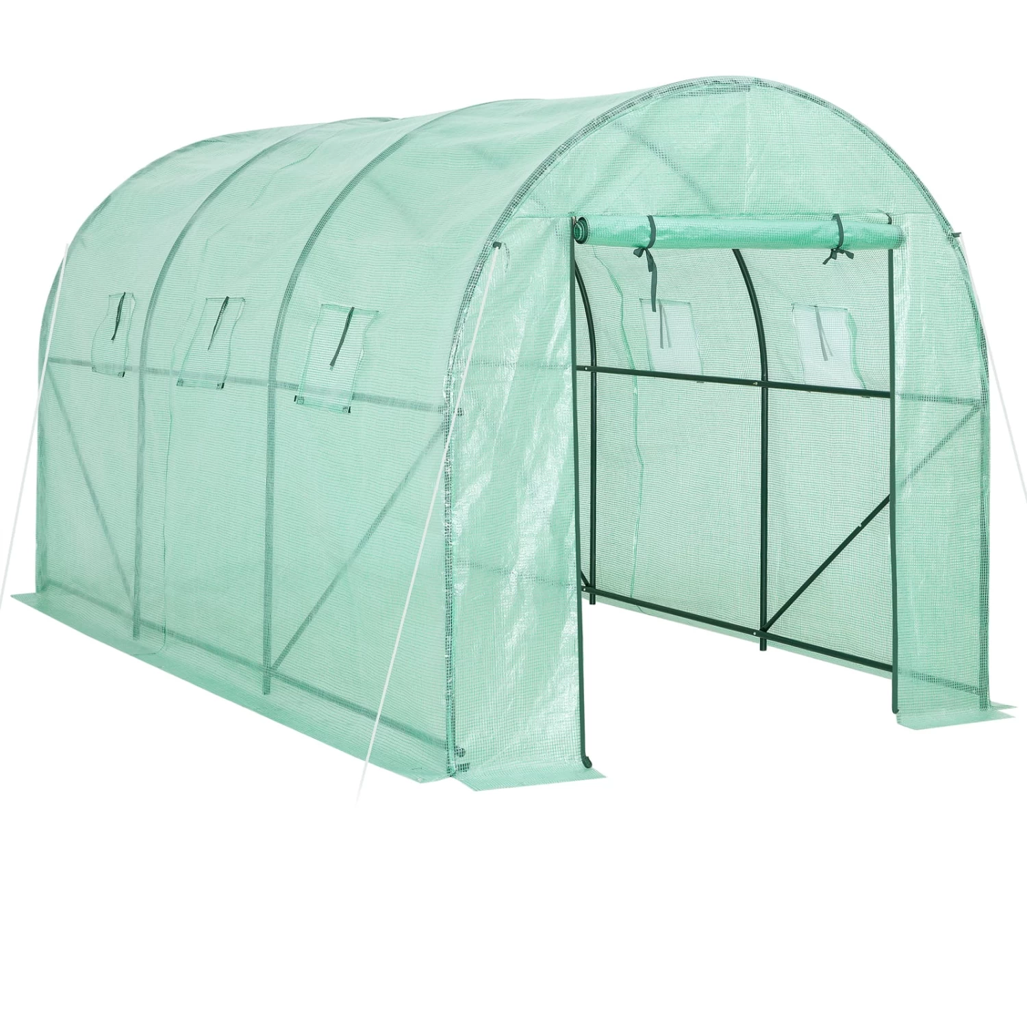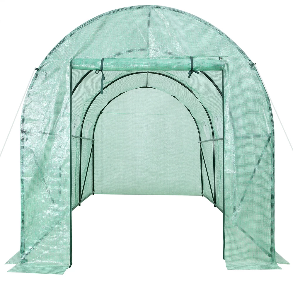 Die Folie lässt immer genügend Sonnenlicht durch und speichert außerdem Feuchtigkeit und Wärme. Sollte es zu heiß werden, öffnen Sie einfach den Reißverschluss der Tür und Fenster und rollen diese auf. So wird eine ideale Luftzirkulation gewährleistet. Die Fenster haben zusätzlich Fliegengitter um Insekten fernzuhalten.