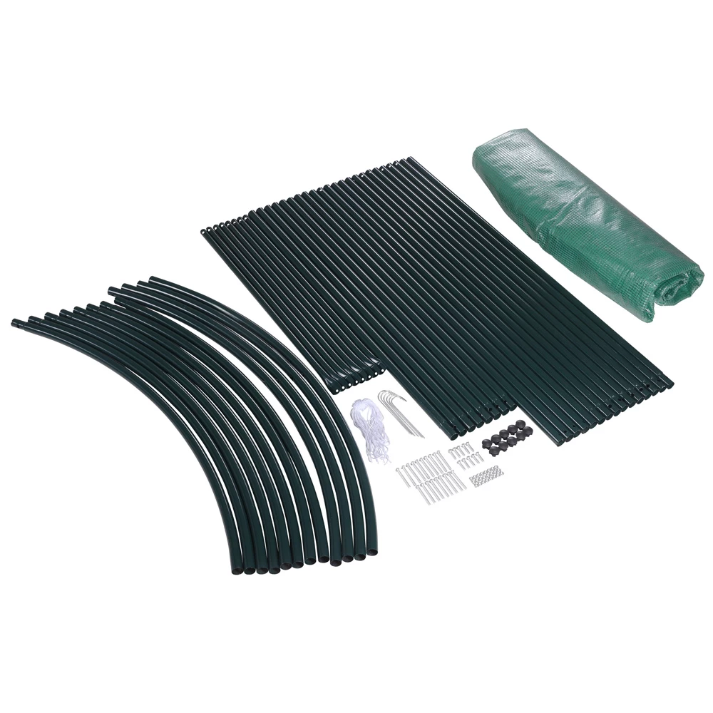 Die Unterkante der Hülle ist etwas länger als der Rahmen. Es wird empfohlen, den Rand der Abdeckung mit Erde oder Steinen zu beschweren, um die Gesamtstabilität des Häuschens zu erhöhen.
