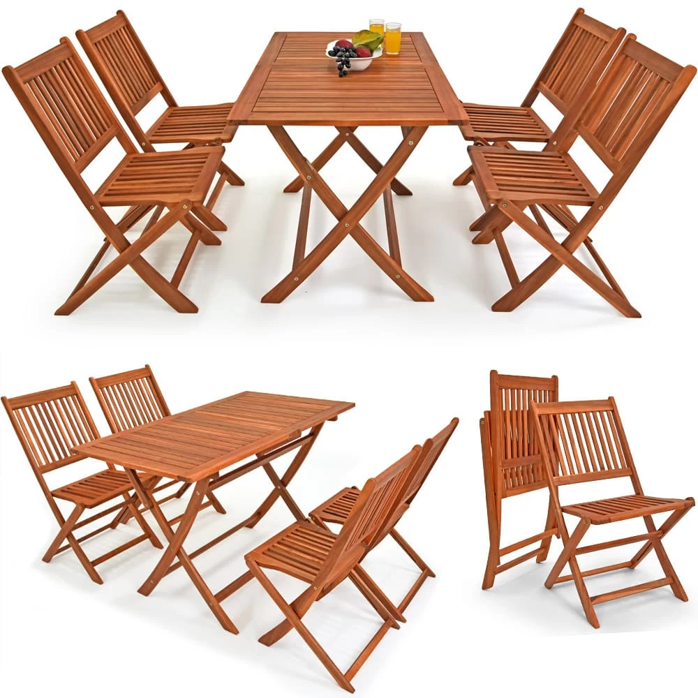 Dank der Klappfunktion der robusten Gartenmöbel können diese im Handumdrehen platzsparend zusammengeklappt und aufbewahrt werden.