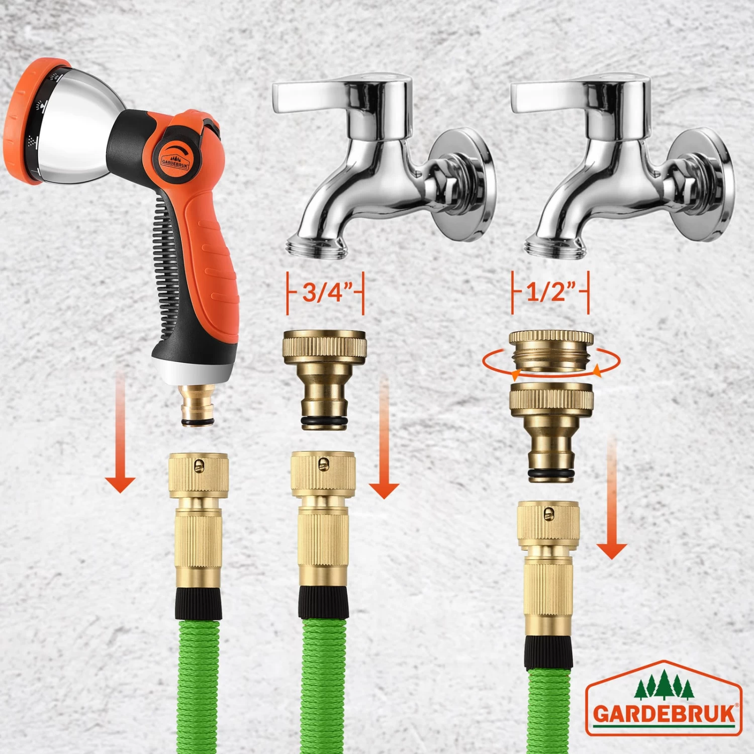 Der hochwertige Flexschlauch von Gardebruk® eignet sich ideal zum Bewässern Ihres Gartens. Er kann auch zur Reinigung von hartnäckigen Verschmutzungen in der Heimwerkstatt oder zur Autowäsche verwendet werden. Der Schlauch besteht aus 3.750D x 3.750D Polyester mit einem 3-fach Latexkern, hält einem Wasserdruck von bis zu 12 bar stand und durch das robuste Material ist er besonders langlebig.