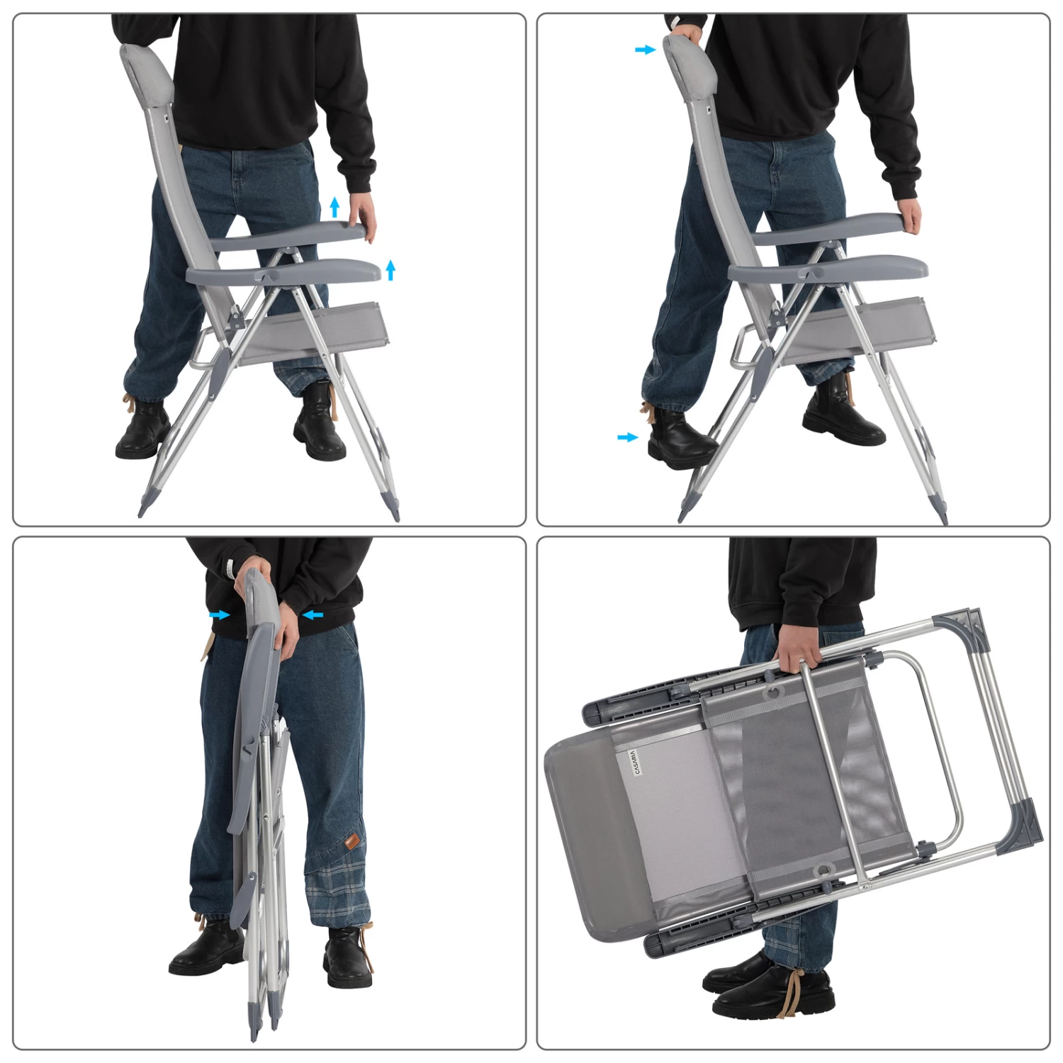 Praktisches 4er-Set Gartenstühle Hochlehner aus Aluminium mit 7-fach verstellbarer Lehne – Ideal für unterwegs!