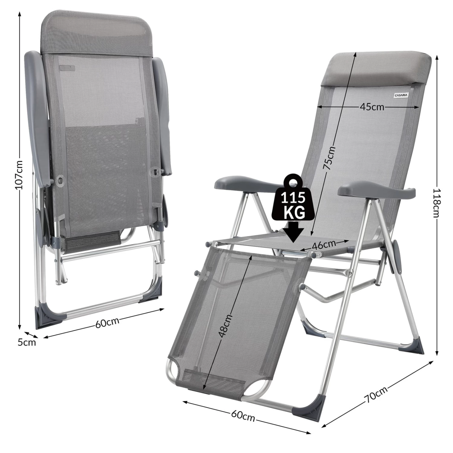 Ob im Garten, auf der Terrasse, zum Picknick, Angeln, Ihrem Badeausflug oder am Bagger-See, diese Stühle sind stabil und belastbar. Dank der hohen Rückenlehne und der Fußablage können Sie nicht nur ganz entspannt Sitzen, sondern auch bequem Liegen.