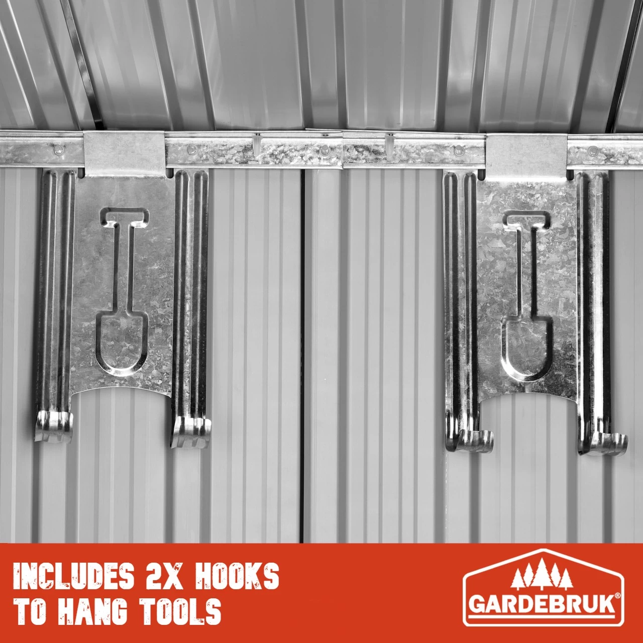 Mit den zusätzlichen 4 Haken können sie bequem ihre Gartengeräte wie Schaufeln, Rechen, Astscheren etc. bis zu 15 kg aufhängen.