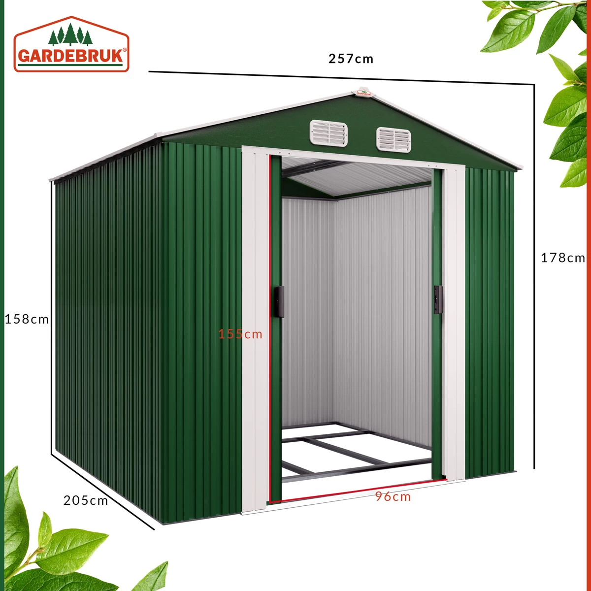 – Gesamtgröße mit Dach LxTxH: 257x205x177,5cm