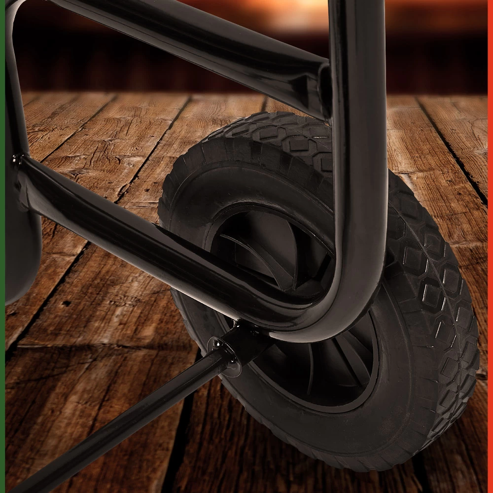 Mit diesem praktischen Holzwagen sorgen Sie bequem für Nachschub an Kaminholz. Dank der Gummibereifung lässt er sich leicht und sicher steuern.