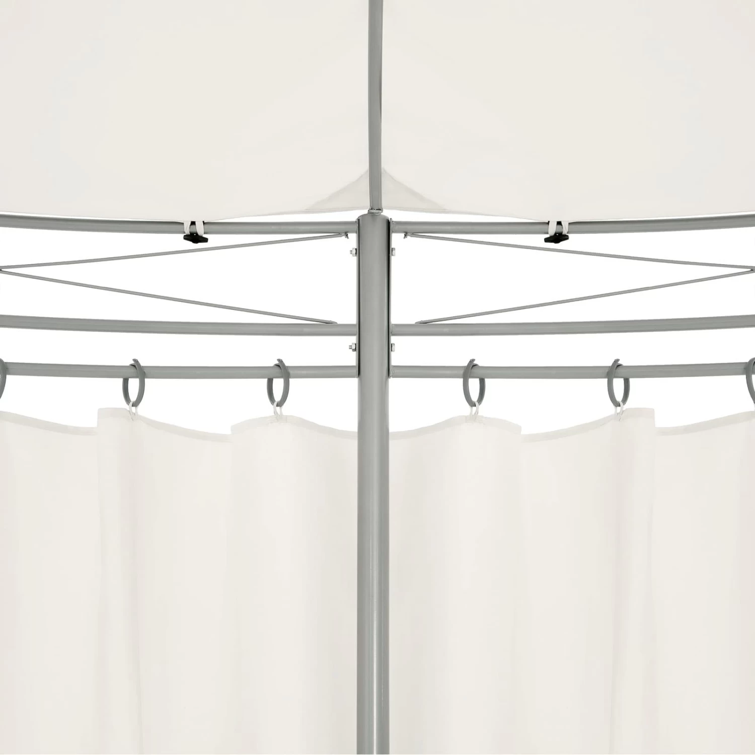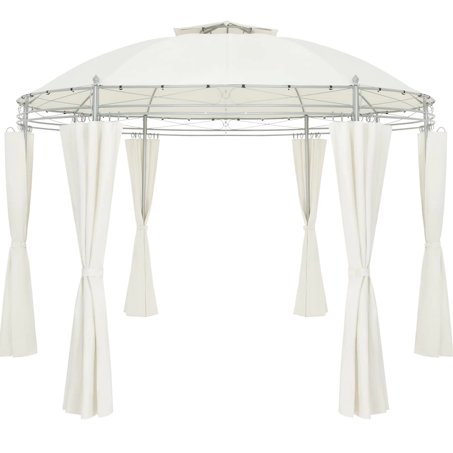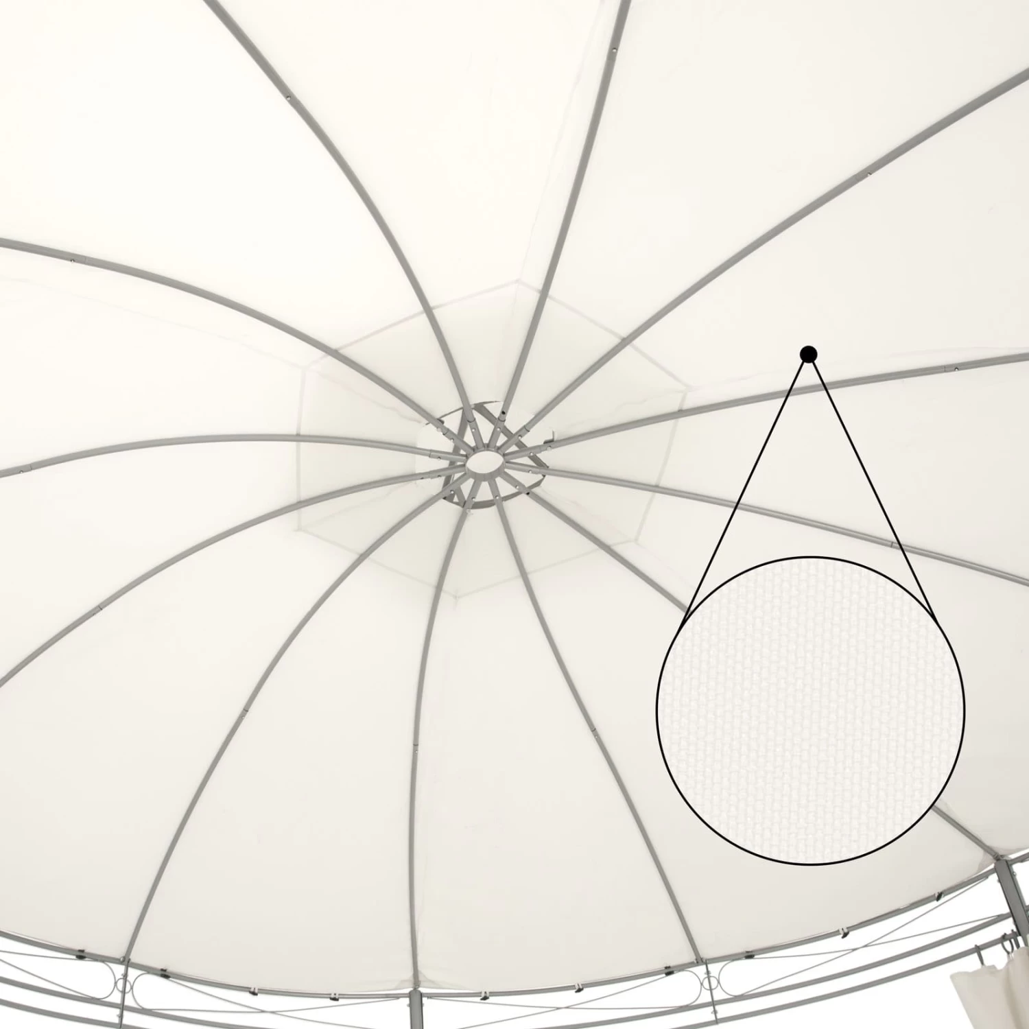 Die Seitenteile können über Ringaufhängungen geöffnet oder geschlossen werden und die Dachhaube des Partyzelts sorgt für optimale Luftzirkulation im Inneren des Pavillons.