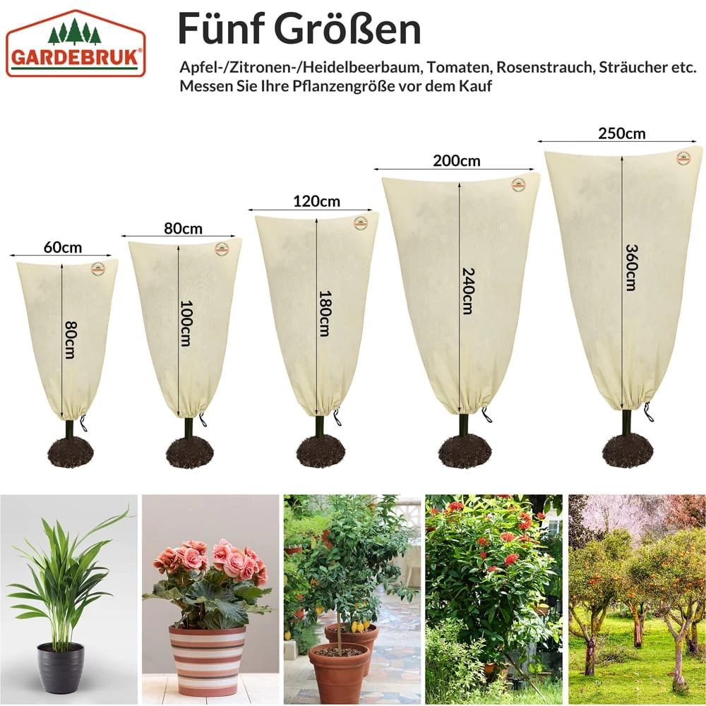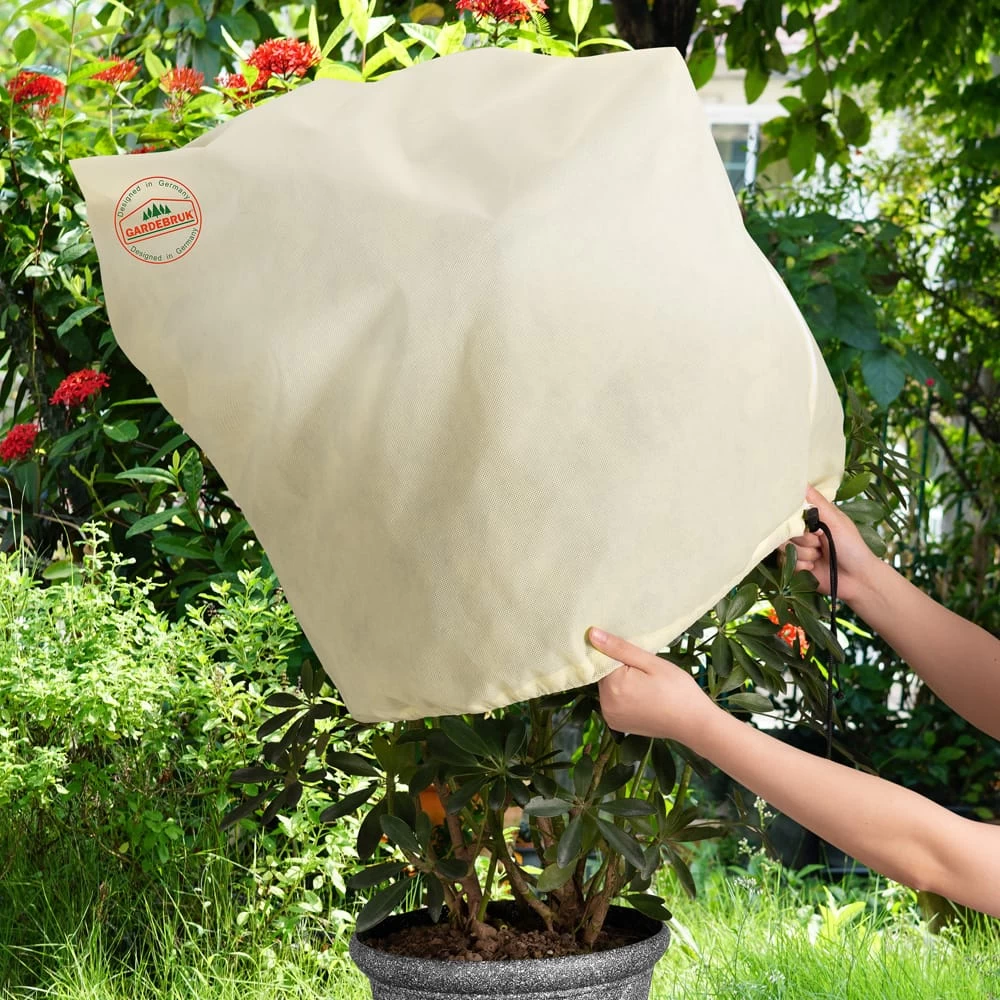 Die Kübelpflanzensäcke von Gardebruk® eignen sich optimal, um junge Bäume und Sträucher in der kalten Jahreszeit abzudecken und vor Frostschäden zu schützen.