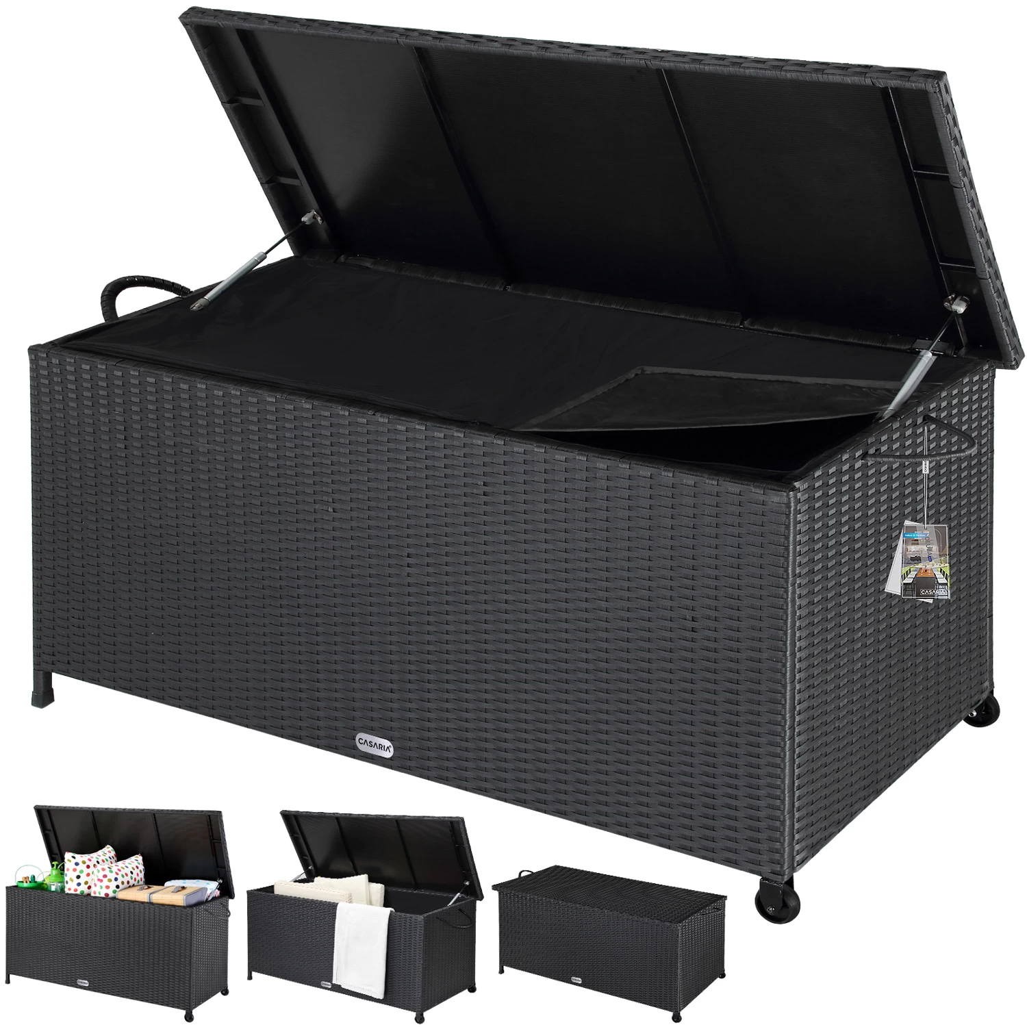 Polyrattan Auflagenbox Schwarz 122x56x61cm Griffe