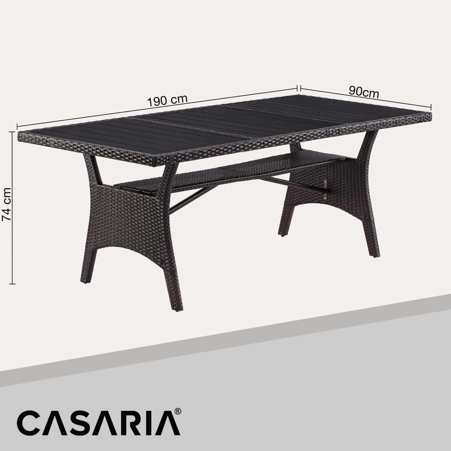 - Gesamtmaß Tisch (LxBxH): 190 x 90 x 75 cm