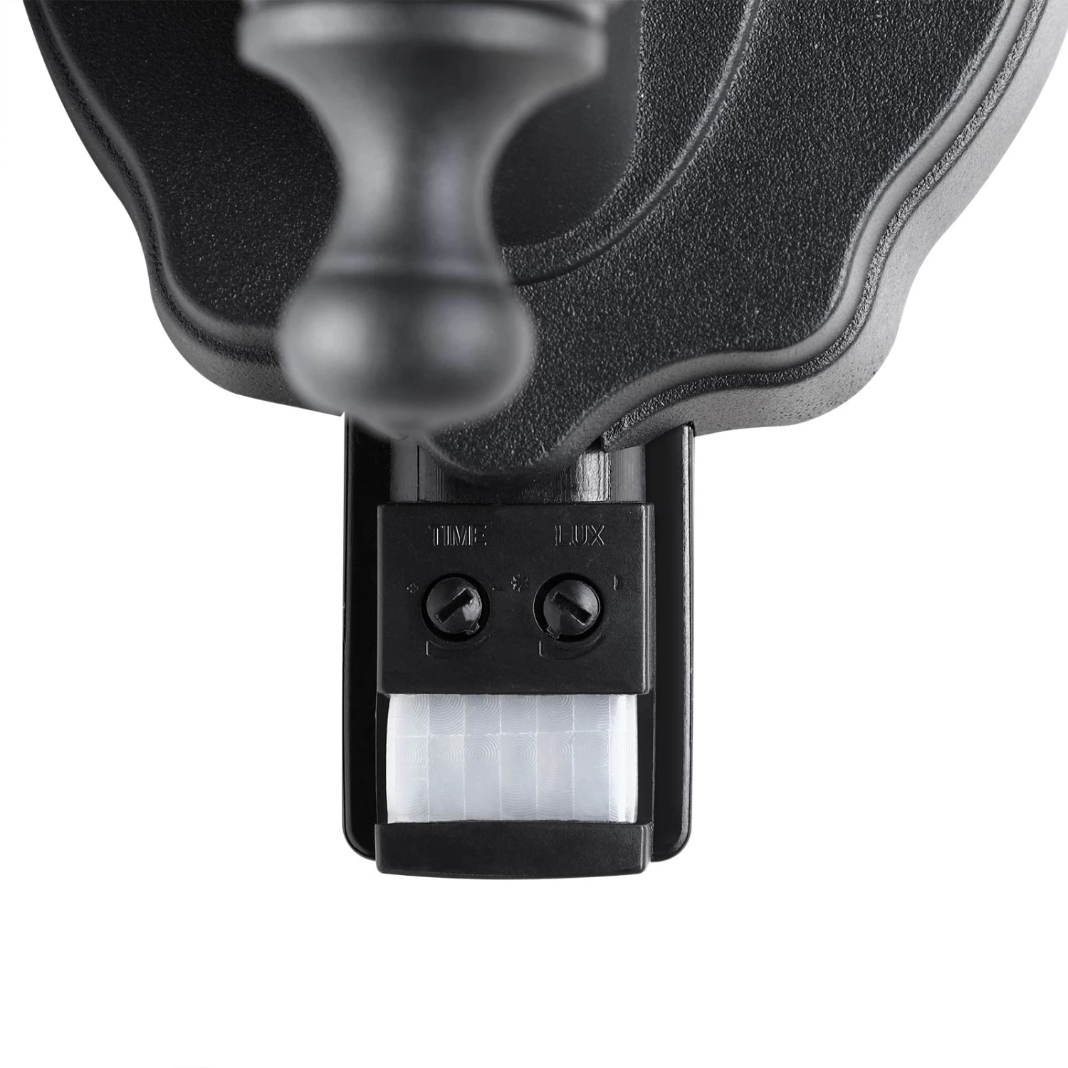 Die Außenlaternen aus Aluminium-Druckguss sind zusätzlich mit einem Bewegungssensor ausgestattet, der in der Helligkeitsempfindlichkeit und Leuchtdauer stufenlos einstellbar ist.