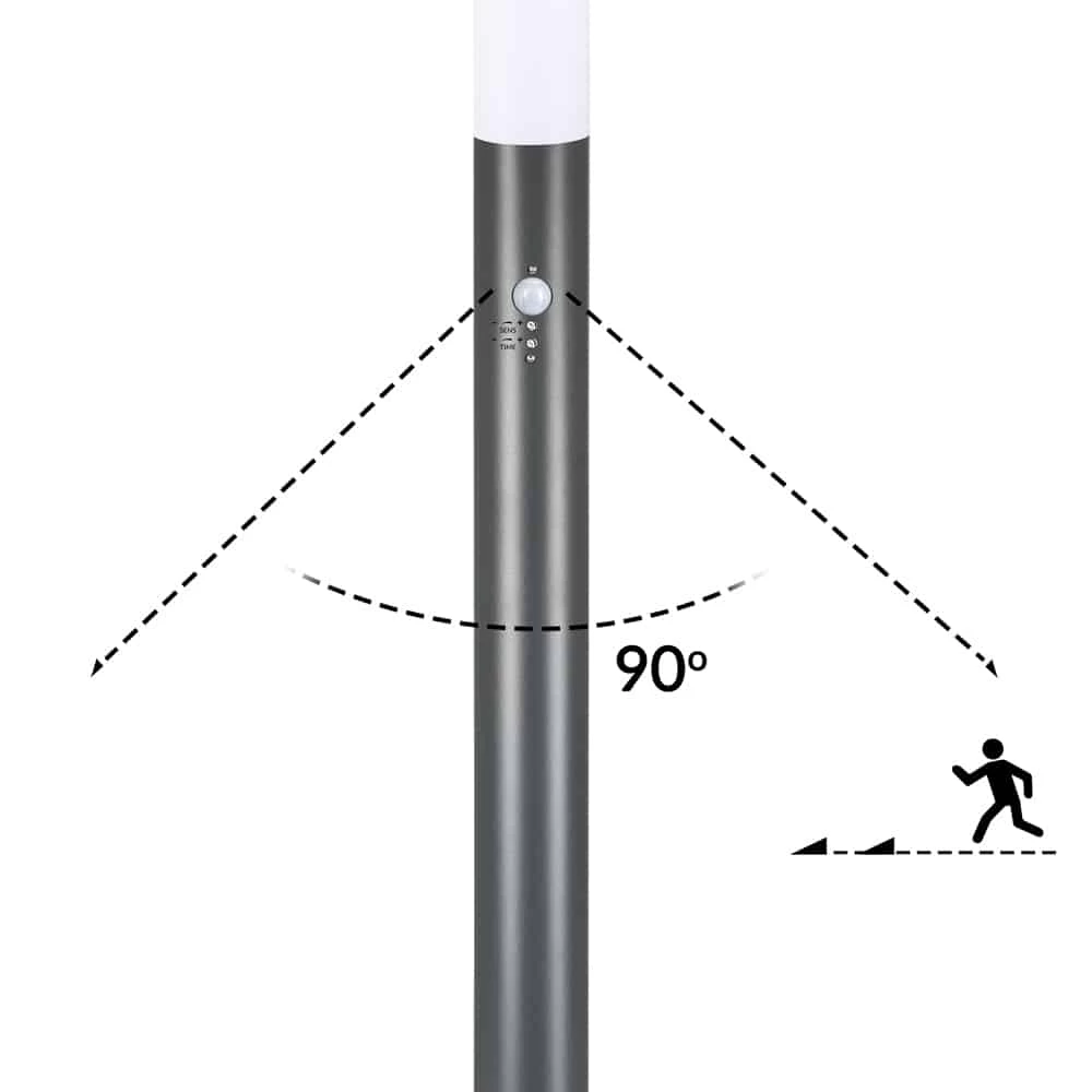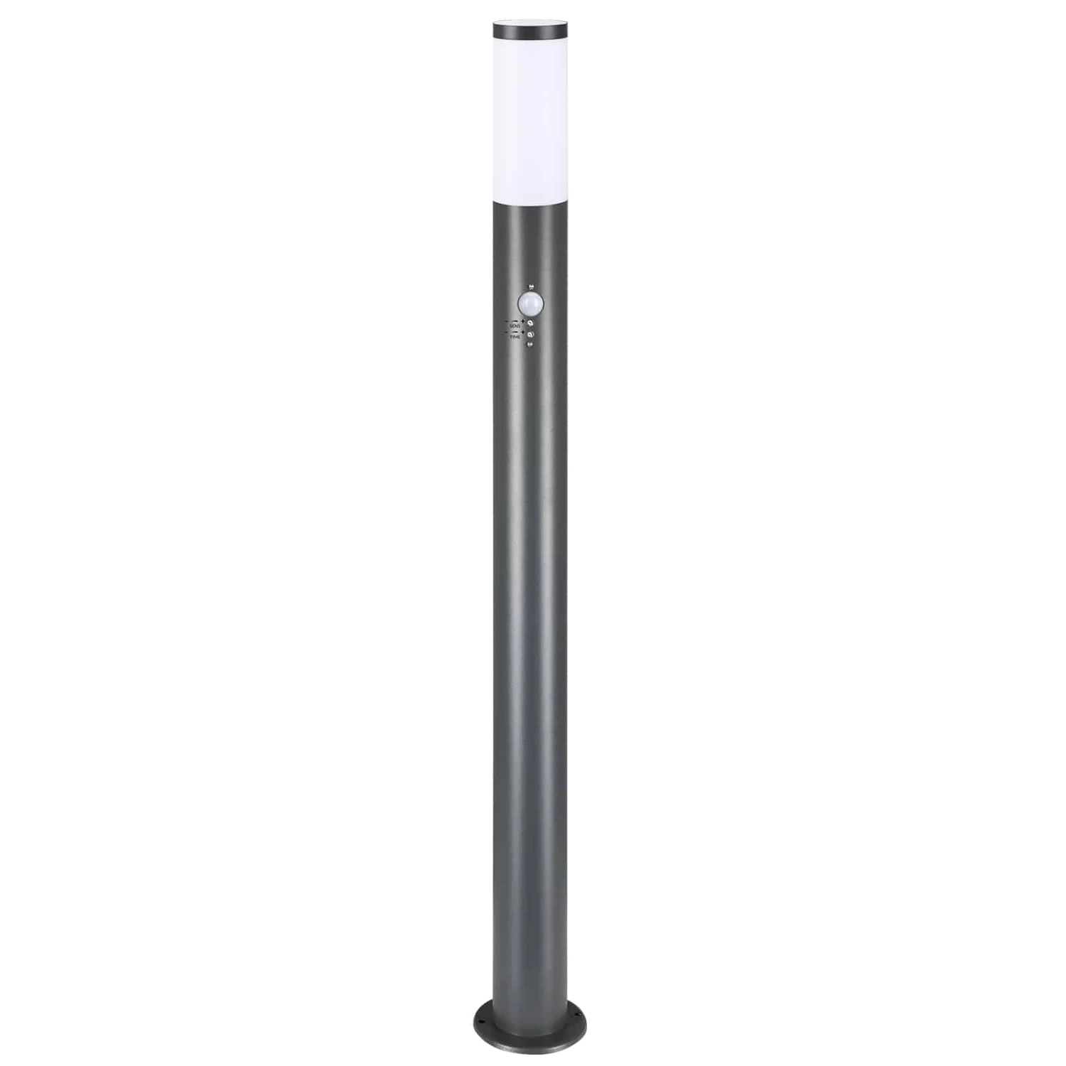 Die Außenleuchte aus Edelstahl ist mit einem Bewegungssensor ausgestattet, der in der Helligkeitsempfindlichkeit und Leuchtdauer stufenlos einstellbar ist.